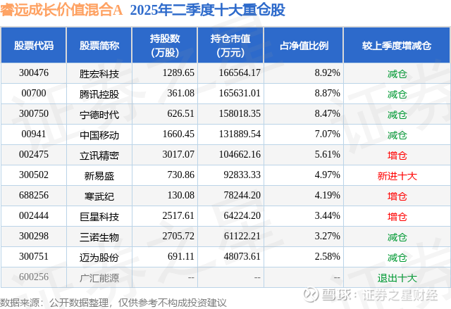 根据2025基金半年报公募基金重仓股数据,重仓该股的公募基金共29家,其中持有数量最多的公募基金为睿远基金的睿远成长价值混合A。睿远成长价值混合A目前规模为168.39亿元,最新净值1.9793(9月25日),较上一交易日上涨0.26%,近一年上涨86.85%。该公募基金现任基金经理为傅鹏博 朱璘。