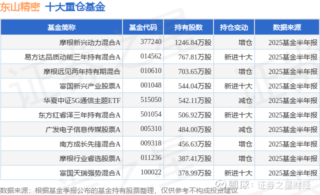 根据2025基金半年报公募基金重仓股数据,重仓该股的公募基金共149家,其中持有数量最多的公募基金为摩根基金(中国)的摩根新兴动力混合A。摩根新兴动力混合A目前规模为55.6亿元,最新净值8.7602(9月25日),较上一交易日上涨1.24%,近一年上涨109.84%。该公募基金现任基金经理为杜猛。杜猛在任的基金产品包括:摩根中国优势混合A,管理时间为2019年3月29日至今,期间收益率为211.57%;摩根远见两年持有期混合,管理时间为2021年1月11日至今,期间收益率为32.11%;摩根沃享远见一年持有期混合A,管理时间为2022年1月25日至今,期间收益率为37.95%。
