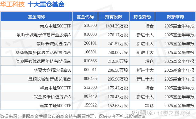 根据2025基金半年报公募基金重仓股数据,重仓该股的公募基金共110家,其中持有数量最多的公募基金为南方基金的南方中证500ETF。南方中证500ETF目前规模为134.38亿元,最新净值7.4394(9月25日),较上一交易日上涨0.27%,近一年上涨57.22%。该公募基金现任基金经理为罗文杰。罗文杰在任的基金产品包括:南方中证500ETF联接(LOF)A,管理时间为2013年4月22日至今,期间收益率为144.14%;南方沪深300ETF,管理时间为2013年5月17日至今,期间收益率为147.47%;南方沪深300ETF联接A,管理时间为2013年5月17日至今,期间收益率为134.2%。