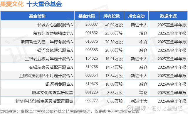 根据2025基金半年报公募基金重仓股数据,重仓该股的公募基金共19家,其中持有数量最多的公募基金为长城基金的长城安心回报混合A。长城安心回报混合A目前规模为7.92亿元,最新净值1.4837(9月25日),较上一交易日下跌0.1%,近一年上涨39.67%。该公募基金现任基金经理为韩林 唐然。韩林在任的基金产品包括:长城价值成长六个月持有期混合A,管理时间为2021年11月4日至今,期间收益率为-22.09%;长城数字经济混合A,管理时间为2023年1月19日至今,期间收益率为39.9%;长城创新成长混合A,管理时间为2023年5月30日至今,期间收益率为39.59%。唐然在任的基金产品包括:长城优选回报六个月持有混合A,管理时间为2022年9月16日至今,期间收益率为6.26%;
