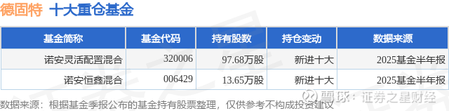 根据2025基金半年报公募基金重仓股数据,重仓该股的公募基金共2家,其中持有数量最多的公募基金为诺安基金的诺安灵活配置混合。诺安灵活配置混合目前规模为6.57亿元,最新净值3.476(9月25日),较上一交易日上涨2.21%,近一年上涨36.31%。该公募基金现任基金经理为刘晓飞。刘晓飞在任的基金产品包括:诺安恒鑫混合,管理时间为2022年11月12日至今,期间收益率为32.19%;