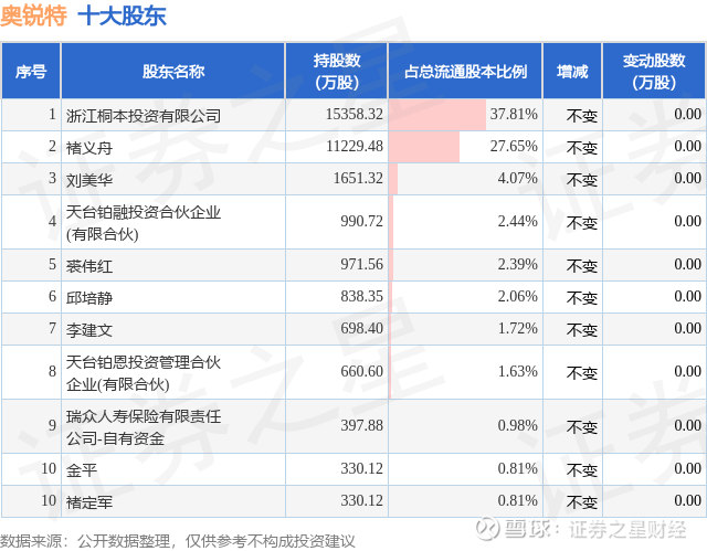 根据奥锐特2025年中报公布的十大股东详情如下: