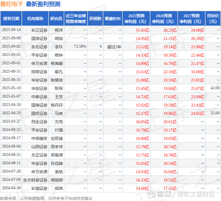 以下是详细的盈利预测信息: