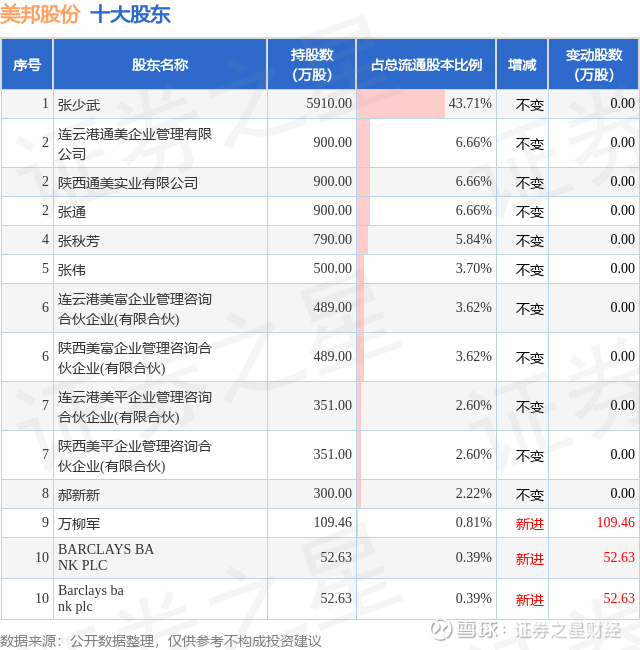 根据美邦股份2025年中报公布的十大股东详情如下: