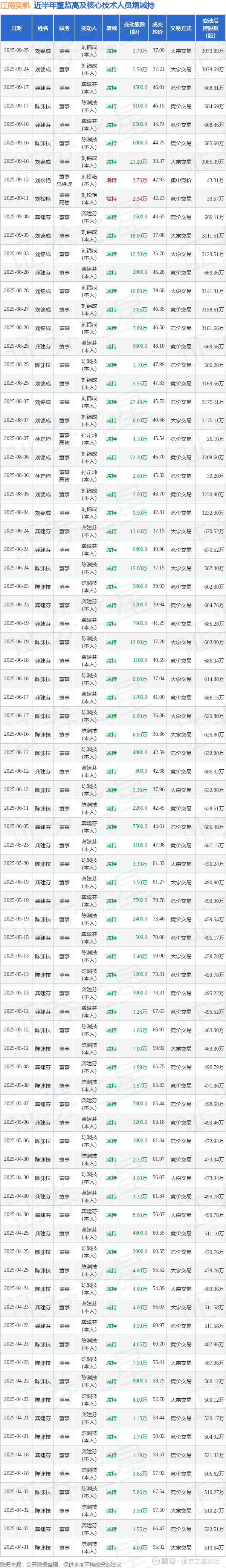 江南奕帆近半年内的董监高及核心技术人员增减持详情如下: