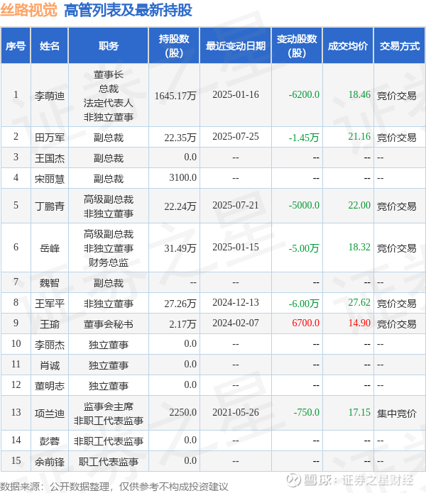 丝路视觉近半年内的董监高及核心技术人员增减持详情如下: