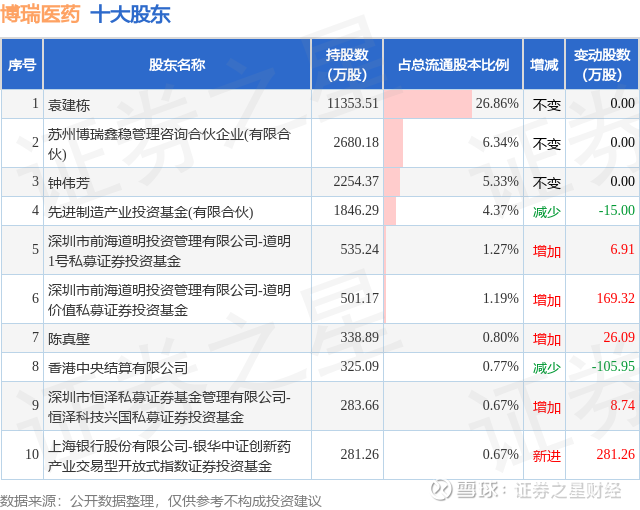 根据博瑞医药2025年中报公布的十大股东详情如下: