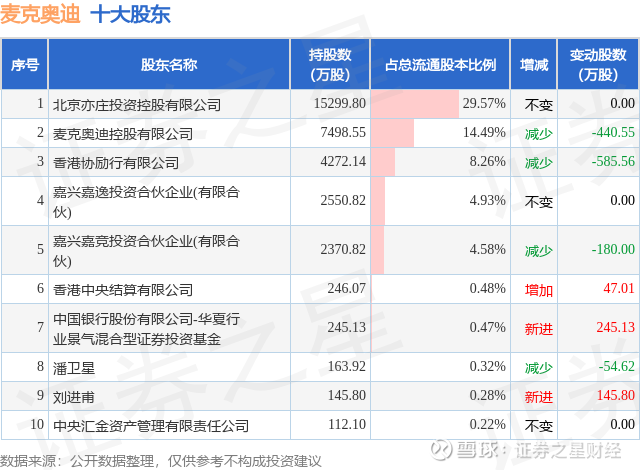 根据麦克奥迪2025年中报公布的十大股东详情如下: