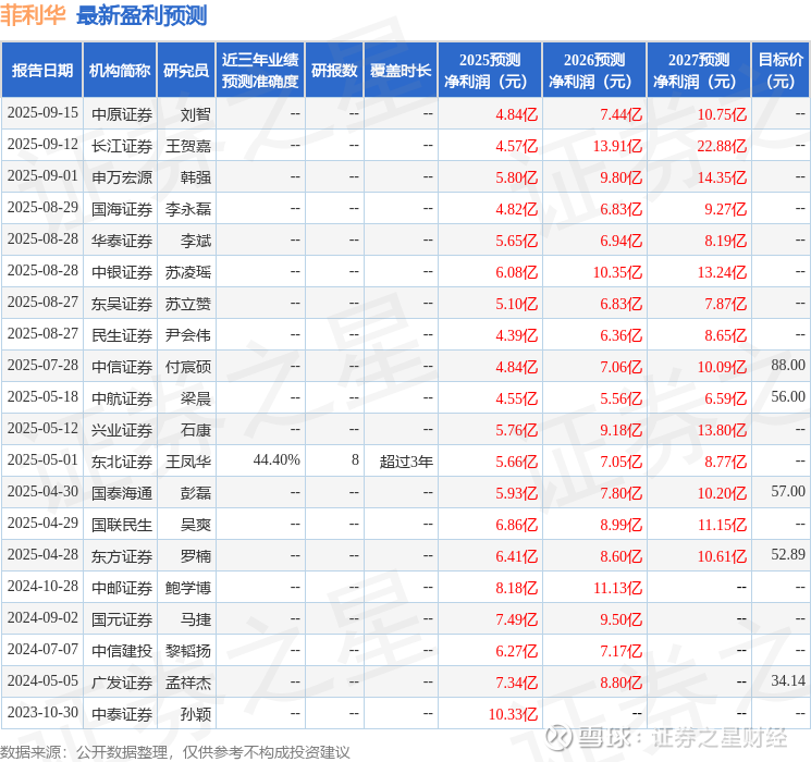 证券之星数据中心根据近三年发布的研报数据计算,东北证券王凤华研究员团队对该股研究较为深入,近三年预测准确度均值为44.4%,其预测2025年度归属净利润为盈利5.66亿,根据现价换算的预测PE为66.61。