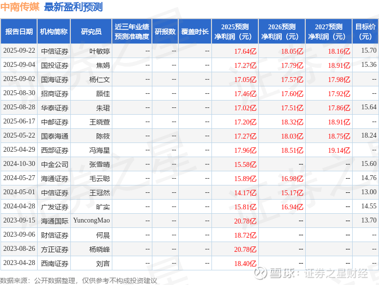 最新盈利预测明细如下: