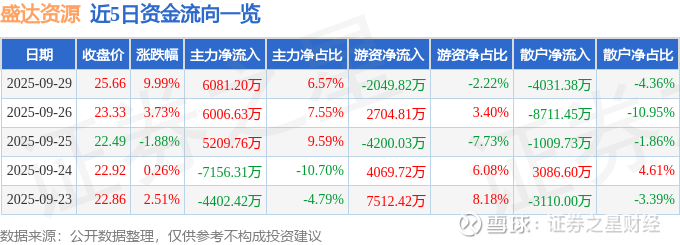 证券之星消息,盛达资源9月29日涨停收盘,收盘价25.66元。该股于13点1分涨停,未打开涨停,截止收盘封单资金为1.04亿元,占其流通市值0.61%。