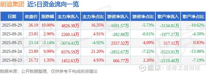 9月29日的资金流向数据方面,主力资金净流入4826.38万元,占总成交额16.35%,游资资金净流出1691.57万元,占总成交额5.73%,散户资金净流出3134.81万元,占总成交额10.62%。