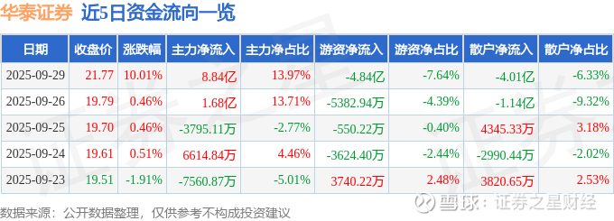 证券之星消息,华泰证券9月29日涨停收盘,收盘价21.77元。该股于13点26分涨停,1次打开涨停,截止收盘封单资金为2.19亿元,占其流通市值0.14%。