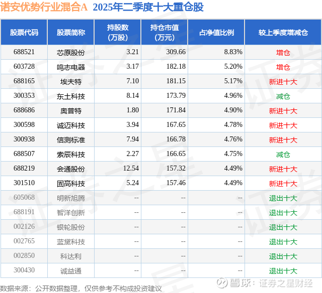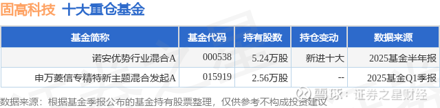 根据2025基金半年报公募基金重仓股数据,重仓该股的公募基金共1家,其中持有数量最多的公募基金为诺安基金的诺安优势行业混合A。诺安优势行业混合A目前规模为0.32亿元,最新净值1.153(9月26日),较上一交易日下跌3.03%,近一年上涨65.42%。该公募基金现任基金经理为邓心怡。邓心怡在任的基金产品包括:诺安平衡混合A,管理时间为2022年10月15日至今,期间收益率为35.69%;诺安稳健回报混合A,管理时间为2023年6月3日至今,期间收益率为52.78%;诺安研究优选混合A,管理时间为2025年3月6日至今,期间收益率为52.18%。