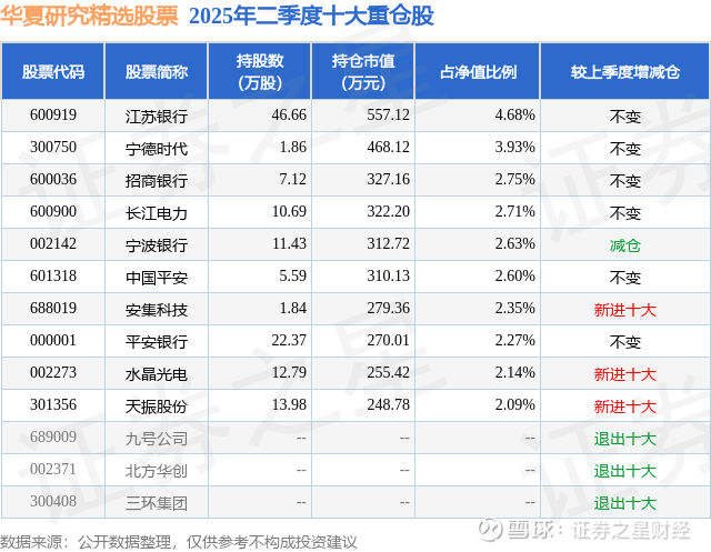 根据2025基金半年报公募基金重仓股数据,重仓该股的公募基金共1家,其中持有数量最多的公募基金为华夏基金的华夏研究精选股票。华夏研究精选股票目前规模为1.19亿元,最新净值1.7006(9月26日),较上一交易日下跌1.23%,近一年上涨33.13%。该公募基金现任基金经理为刘文成。刘文成在任的基金产品包括:华夏兴阳一年持有混合,管理时间为2022年6月15日至今,期间收益率为-19.9%。