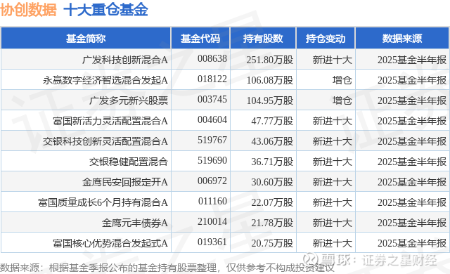根据2025基金半年报公募基金重仓股数据,重仓该股的公募基金共48家,其中持有数量最多的公募基金为广发基金的广发科技创新混合A。广发科技创新混合A目前规模为26.57亿元,最新净值2.3784(9月26日),较上一交易日下跌3.43%,近一年上涨88.67%。该公募基金现任基金经理为吴远怡。吴远怡在任的基金产品包括:广发创新升级混合,管理时间为2020年9月30日至今,期间收益率为-14.49%;广发北交所精选两年定开混合A,管理时间为2021年11月23日至今,期间收益率为76.86%;广发价值核心混合A,管理时间为2022年11月1日至今,期间收益率为89.31%。