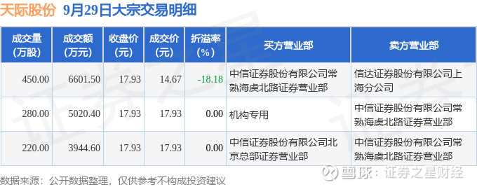 证券之星消息,9月29日天际股份发生大宗交易,交易数据如下: