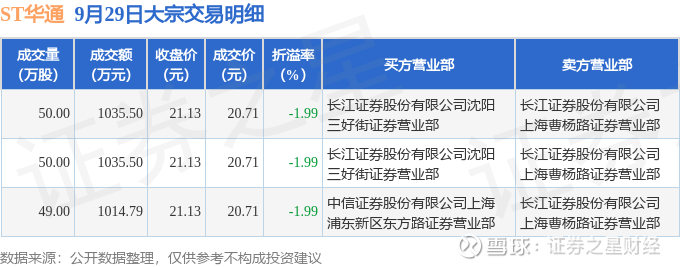 证券之星消息,9月29日ST华通发生大宗交易,交易数据如下: