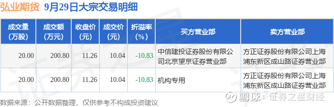 证券之星消息,9月29日弘业期货发生大宗交易,交易数据如下: