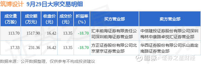 证券之星消息,9月29日筑博设计发生大宗交易,交易数据如下: