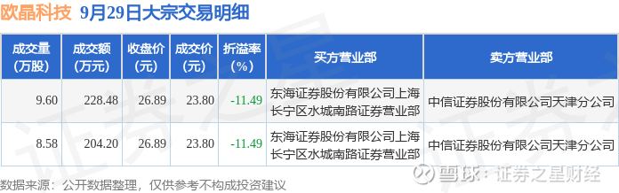 证券之星消息,9月29日欧晶科技发生大宗交易,交易数据如下:
