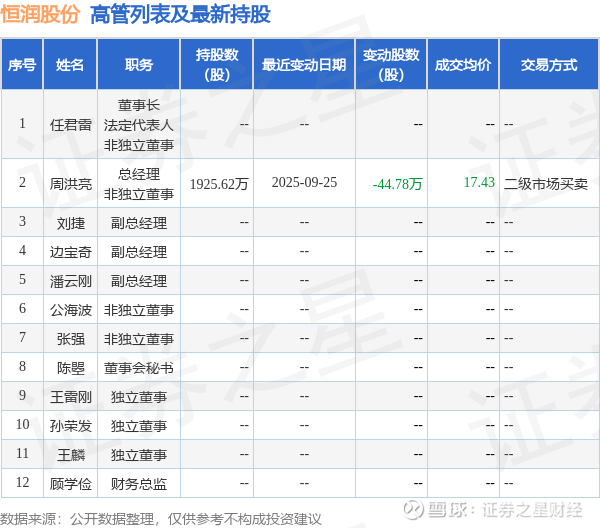 恒润股份近半年内的董监高及核心技术人员增减持详情如下: