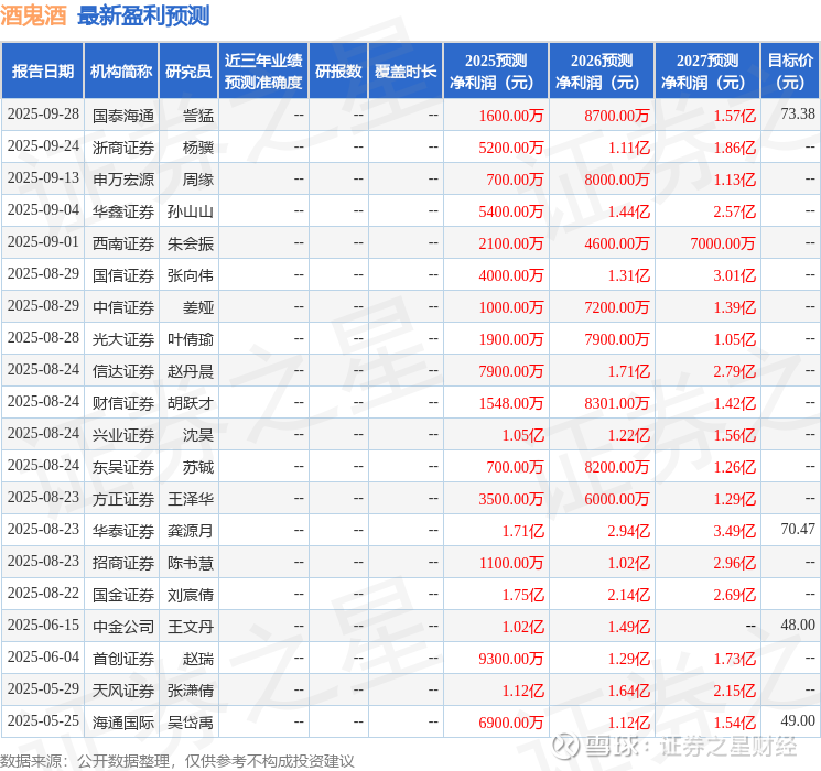 天风证券股份有限公司张潇倩,唐家全近期对酒鬼酒进行研究并发布了研究报告《25H1改革深化业绩承压,25H2新品放量拐点可期》,给予酒鬼酒增持评级。