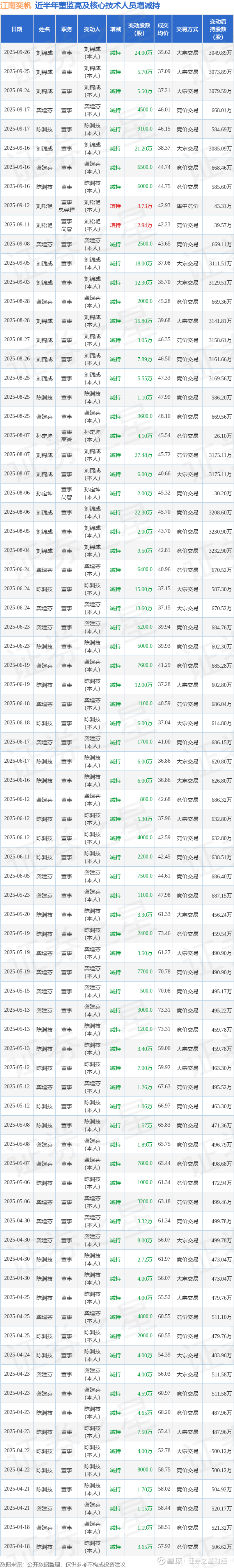 江南奕帆近半年内的董监高及核心技术人员增减持详情如下: