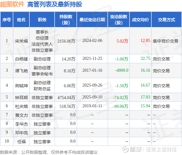 超图软件的高管列表及最新持股情况如下: