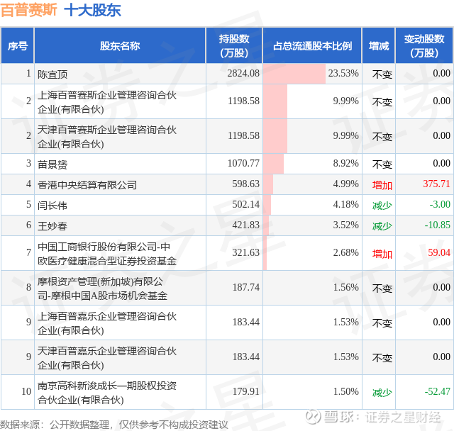 根据百普赛斯2025年中报公布的十大股东详情如下: