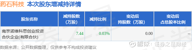 证券之星消息,9月29日药石科技发布公告《药石科技:关于股东减持股份计划实施完成的公告》,其股东南京诺维科思创业投资合伙企业(有限合伙)于2025年9月27日至2025年9月29日间合计减持7.44万股,占公司目前总股本的0.0318%,变动期间该股股价下跌0.34%,截止9月29日收盘报40.54元。
