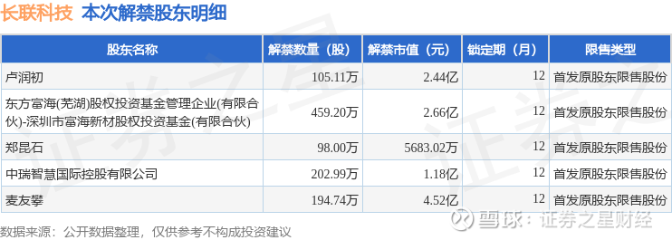 本次解禁涉及股东明细见下表: