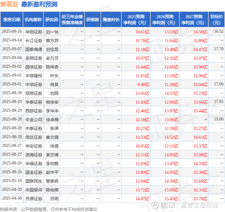 以下是详细的盈利预测信息: