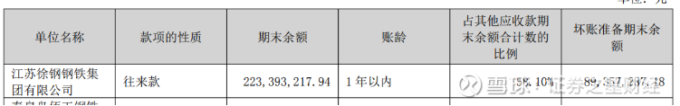 按期末余额前五名的情况来看,来自徐钢集团的应收款余额为2.23亿元,占其他应收款期末余额合计数的58.1%,计提的坏账准备期末余额为8935.73万元。