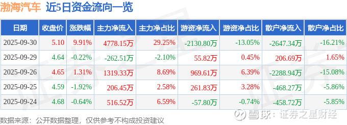 证券之星消息,渤海汽车9月30日涨停收盘,收盘价5.1元。该股于9点31分涨停,未打开涨停,截止收盘封单资金为4643.61万元,占其流通市值0.96%。
