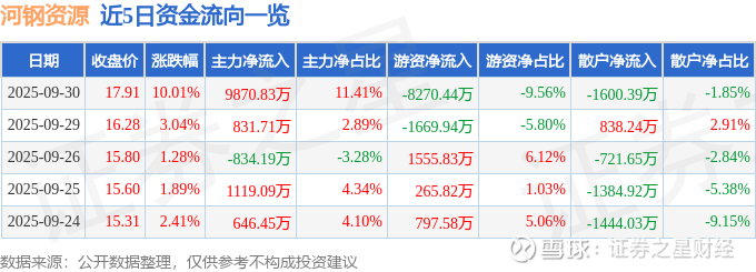 证券之星消息,河钢资源9月30日涨停收盘,收盘价17.91元。该股于9点46分涨停,3次打开涨停,截止收盘封单资金为2989.17万元,占其流通市值0.27%。