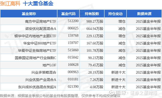 重仓张江高科的前十大公募基金请见下表: