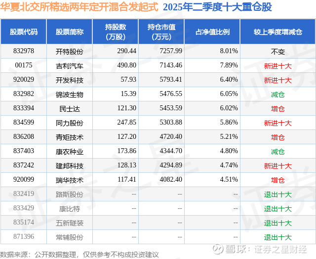 重仓开特股份的公募基金请见下表: