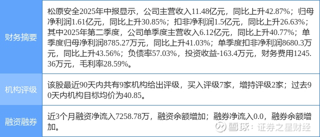 2025年8月21日,东吴证券研究员黄细里,刘力宇发布了对松原安全的研报《2025年半年报点评:2025Q2业绩符合预期,自主被动安全龙头持续成长》,该研报对松原安全给出“买入”评级。证券之星数据中心根据近三年发布的研报数据计算,该研报作者对此股的盈利预测准确度为86.86%。