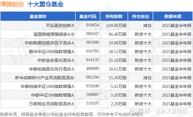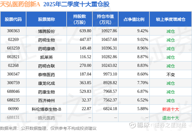 根据2025基金半年报公募基金重仓股数据,重仓该股的公募基金共12家,其中持有数量最多的公募基金为天弘基金的天弘医药创新A。天弘医药创新A目前规模为7.07亿元,最新净值1.182(9月29日),较上一交易日上涨0.63%,近一年上涨75.73%。该公募基金现任基金经理为郭相博。郭相博在任的基金产品包括:天弘臻选健康混合A,管理时间为2022年3月17日至今,期间收益率为32.87%。