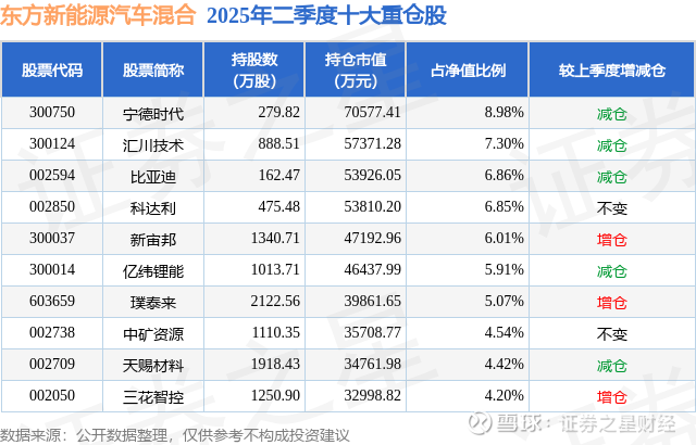 根据2025基金半年报公募基金重仓股数据,重仓该股的公募基金共62家,其中持有数量最多的公募基金为东方基金的东方新能源汽车混合。东方新能源汽车混合目前规模为78.58亿元,最新净值3.0037(9月29日),较上一交易日上涨5.38%,近一年上涨69.89%。该公募基金现任基金经理为李瑞。李瑞在任的基金产品包括:东方汽车产业趋势混合A,管理时间为2022年2月9日至今,期间收益率为-0.75%;东方高端制造混合A,管理时间为2023年3月1日至今,期间收益率为-7.98%;东方低碳经济混合A,管理时间为2025年3月4日至今,期间收益率为11.87%。