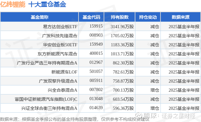 根据2025基金半年报公募基金重仓股数据,重仓该股的公募基金共220家,其中持有数量最多的公募基金为易方达基金的易方达创业板ETF。易方达创业板ETF目前规模为855.37亿元,最新净值3.2126(9月29日),较上一交易日上涨2.75%,近一年上涨73.57%。该公募基金现任基金经理为成曦 刘树荣。成曦在任的基金产品包括:易方达创业板ETF联接A,管理时间为2016年5月7日至今,期间收益率为50.35%;易方达深证100ETF,管理时间为2016年5月7日至今,期间收益率为83.7%;易方达上证科创板50成份ETF,管理时间为2020年9月28日至今,期间收益率为4.37%。刘树荣在任的基金产品包括:易方达深证100ETF联接A,管理时间为2017年7月18日至今,期间收益率为62.42%;易方达创业板ETF联接A,管理时间为2017年7月18日至今,期间收益率为86.66%;易方达深证100ETF,管理时间为2017年7月18日至今,期间收益率为62.18%;