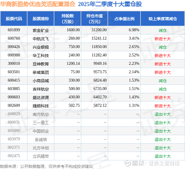 根据2025基金半年报公募基金重仓股数据,重仓该股的公募基金共32家,其中持有数量最多的公募基金为华商基金的华商新趋势优选灵活配置混合。华商新趋势优选灵活配置混合目前规模为44.69亿元,最新净值13.494(9月29日),较上一交易日上涨3.09%,近一年上涨45.9%。该公募基金现任基金经理为童立。童立在任的基金产品包括:华商新锐产业混合,管理时间为2016年12月23日至今,期间收益率为49.82%;华商研究精选灵活配置A,管理时间为2017年12月21日至今,期间收益率为226.6%;华商科技创新混合,管理时间为2020年3月6日至今,期间收益率为106.21%;华商研究回报一年持有混合A,管理时间为2023年3月7日至今,期间收益率为21.48%。