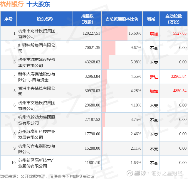 根据杭州银行2025年中报公布的十大股东详情如下: