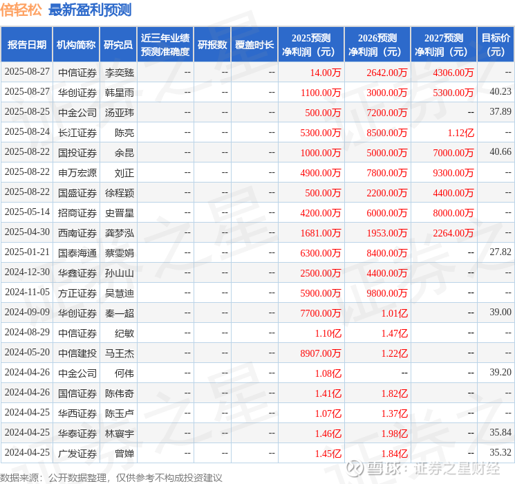 以下是详细的盈利预测信息: