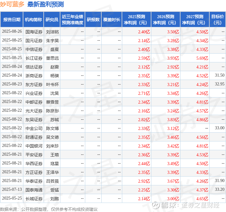 以下是详细的盈利预测信息: