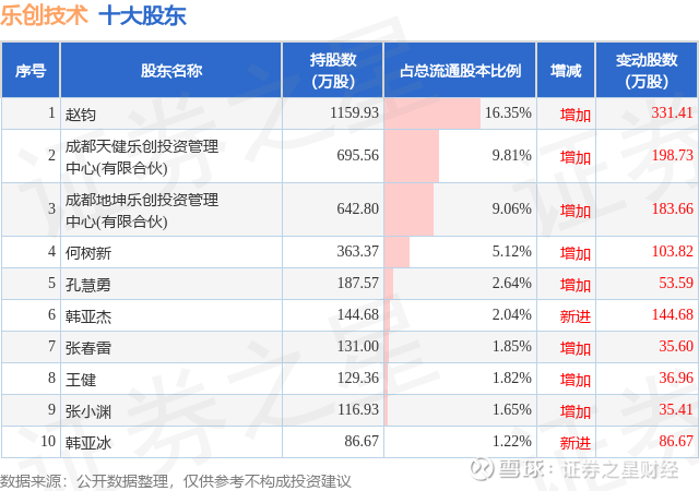 根据乐创技术2025年中报公布的十大股东详情如下: