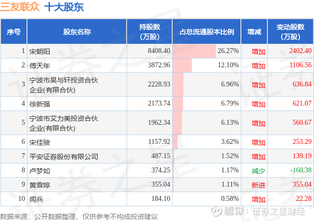 证券之星消息,9月30日三友联众发布公告《三友联众:关于持股5%以上股东减持股份触及1%整数倍的公告》,其股东宁波市艾力美投资合伙企业(有限合伙)、宁波市昊与轩投资合伙企业(有限合伙)于2025年8月12日至2025年9月29日间合计减持133.84万股,占公司目前总股本的0.4181%,变动期间该股股价下跌11.56%,截止9月29日收盘报11.32元。