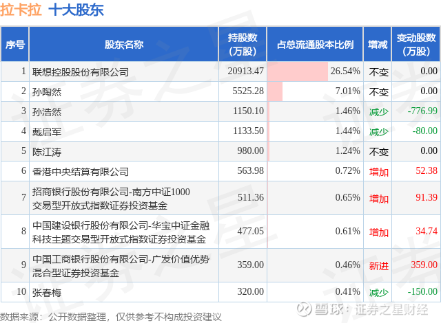 根据拉卡拉2025年中报公布的十大股东详情如下: