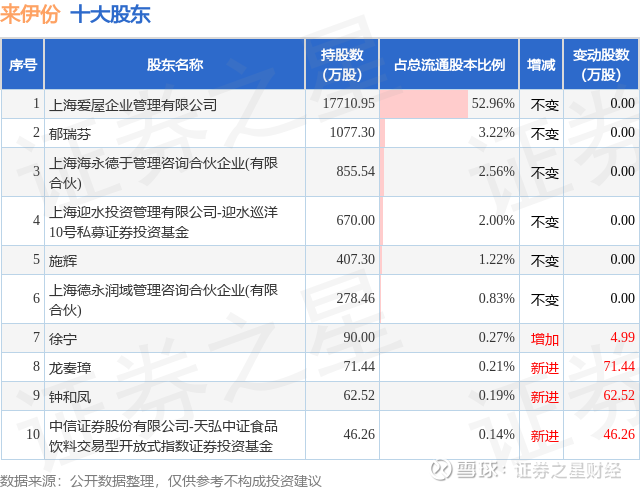 证券之星消息,9月30日来伊份发布公告《来伊份:上海来伊份股份有限公司控股股东权益变动触及1%刻度暨减持结果公告》,其股东上海爱屋企业管理有限公司于2025年9月30日合计减持115.0万股,占公司目前总股本的0.3439%,变动期间该股股价下跌1.08%,截止9月30日收盘报12.78元。